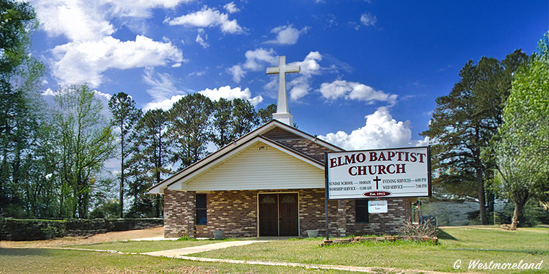 Elmo Baptist Church is located at the intersection of Grainger Road and Phares Road. GPS: 31.621389, -90.938889