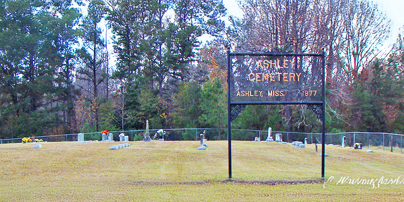 Ashley Cemetery is located on Ashley Road near Poplar Springs east-southeast of Hazlehurst. GPS: 31.801944, -90.261667